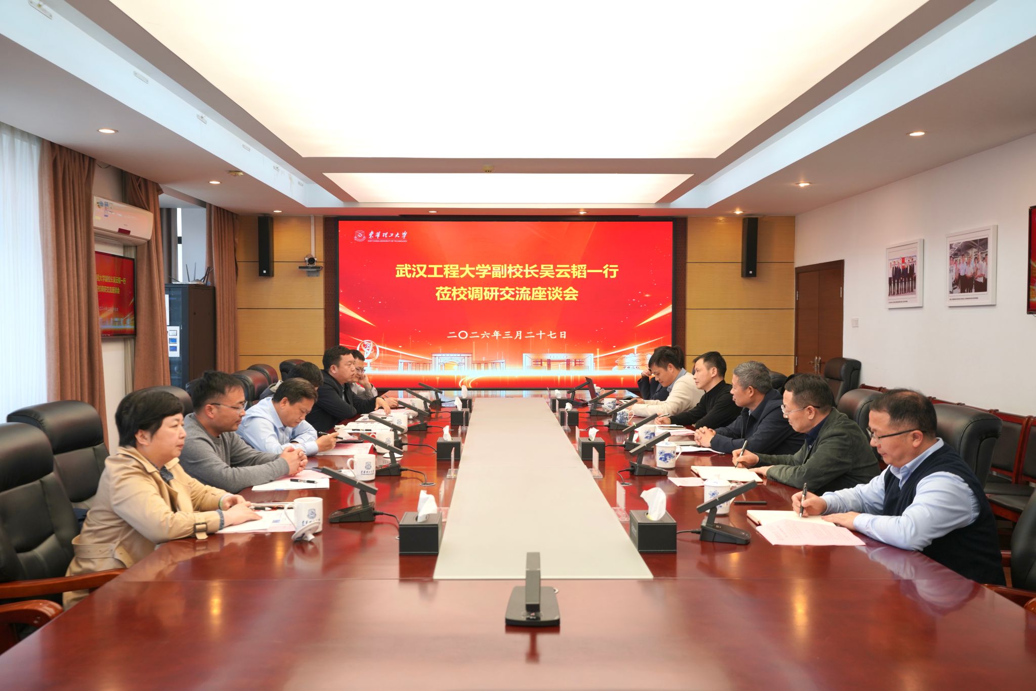 27日下午,吴云韬一行前往东华理工大学调研交流。他指出,东华理工大学在特色学科建设、科研成果转化等方面成果丰硕,诸多先进理念和实践做法值得我校深入学习借鉴。希望以此次调研为契机,搭建常态化交流平台,推动两校在学科交叉融合、科研项目合作、资源共建共享等领域开展深度合作,携手探索地方高校高质量发展新路径。